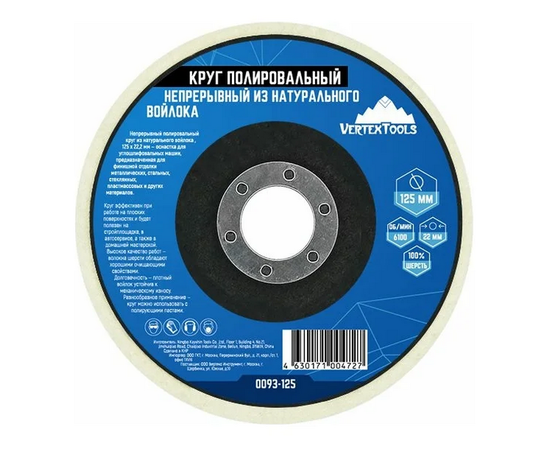 КРУГ ПОЛИРОВАЛЬНЫЙ НЕПРЕРЫВНЫЙ ИЗ НАТУР. ВОЙЛОКА 125х22,2