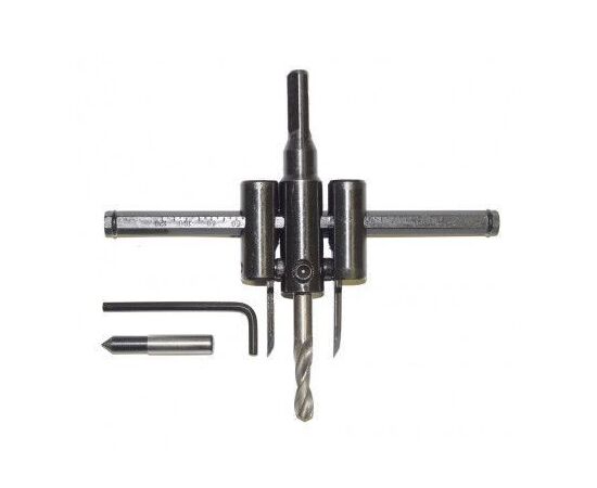 Сверло по дереву «Балеринка» выполнено из высококачественной углеродистой стали и предназначено для обработки деревянных изделий. Диаметр вырезаемого отверстия регулируется перемещаемыми по горизонтальной направляющей режущими пластинами, которые могут максимально сдвинуться относительно направляющего сверла на 120 мм. Модель комплектуется специальным шестигранным ключом.