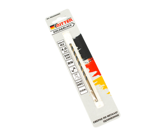 Сверло по металлу Ritter EC 4,0 мм удлиненное (HSS-G M2 Gold and Black) DIN 340 RN (1 шт в бл)