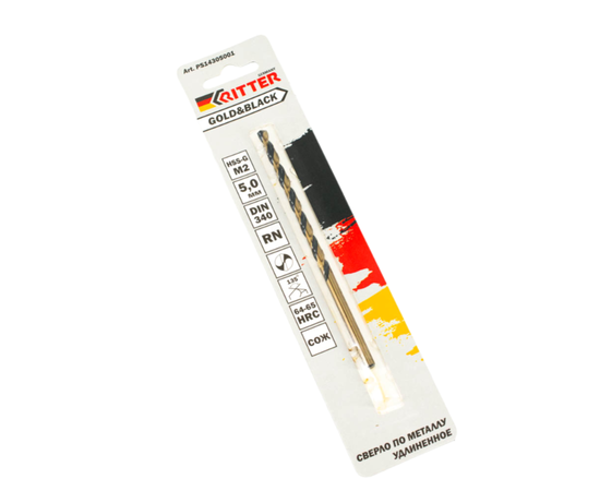 Сверло по металлу Ritter EC 5,0 мм удлиненное (HSS-G M2 Gold and Black) DIN 340 RN (1 шт в бл)