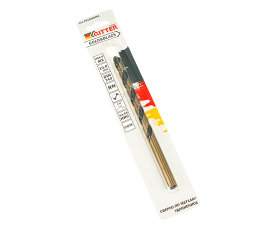 Сверло по металлу Ritter EC 10,0 мм удлиненное (HSS-G M2 Gold and Black) DIN 340 RN (1 шт в бл)