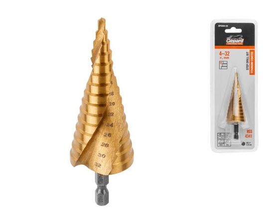 Сверло по металлу ступенчатое 4-32 мм HSS TIN GEPARD