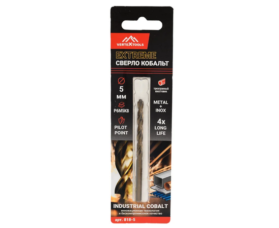 СВЕРЛО ПО МЕТАЛЛУ VERTEXTOOLS COBALT Р6М5К8 5мм