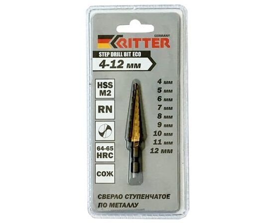 Сверло Ritter ступенчатое по металлу 4-12 мм (4/5/6/7/8/9/10/11/12) HSS (M2)