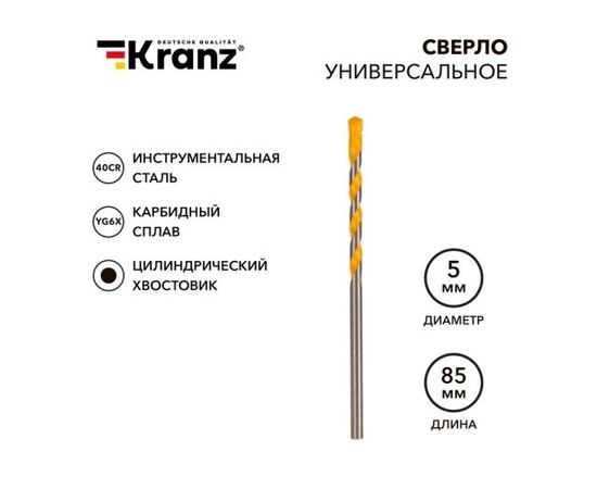 Сверло универсальное 5х85 твердосплавное KRANZ