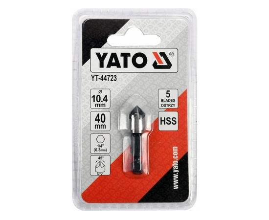 Конический зенкер 10.4 мм, HEX YATO YT-44723 предназначен для сверления твердых и необработанных материалов. Изготовлен из быстрорежущей стали HSS, что обеспечивает в несколько раз более быстрое сверление в нержавеющей стали, конструкционной стали, алюминии. 5-лезвийный наконечник «Split Point» с углом 45° позволяет сверлить без предварительной пробивки. Шлифованная поверхность повышает точность сверления.