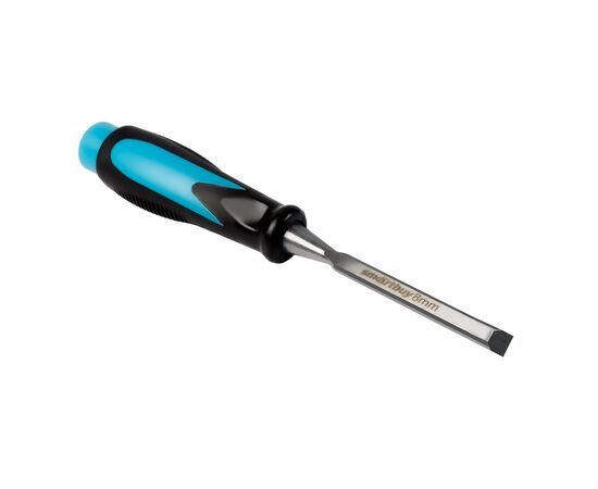 Стамеска-долото 8 мм с двухкомпонентной усиленной ударной рукояткой из CrV стали - удобный инструмент, при помощи которого можно работать с различными сортами древесины. Изделие обеспечивает высокую производительность за счет эргономичной рукоятки с рельефной поверхностью.