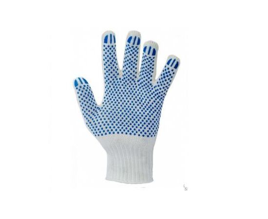 Перчатки рабочие трикотажные белые, х/б с ПВХ покрытием "Точка" 10 класс, 4-х нитка.