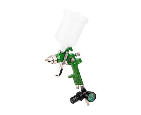 Краскораспылитель HVLP с набором регулировок. Регулятор с манометром в комплекте позволяет настроить работу краскораспылителя максимально точно.