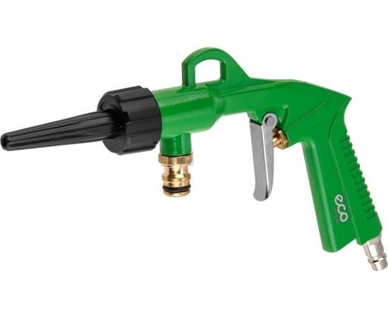 Пистолет моечный пневматический ECO AWG-12 (EC3923-9) - моечный пневмопистолет предназначен для мойки и смазки поверхностей, узлов или деталей потоком моющей жидкости и воздухом. Оснащён быстросъёмным соединением для подключения к садовому шлангу. Рабочее давление: 2-6 бар. Номинальный расход воздуха: 140 л/мин. Соединение: 1/4".