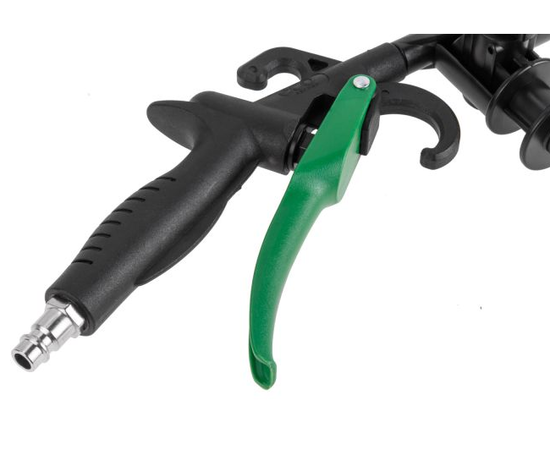 Компактный пневмопистолет кроме привычной функции продувания также выполняет функцию пылесоса - инструмент отлично подойдет для небольшой уборки в салоне автомобиля. Пневмопистолет оснащён удобным переключателем продувки/всасывания, текстильным мешком для сбора мелкого мусора и двумя соплами.