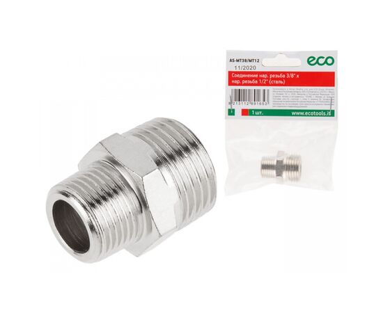 Соединение нар. резьба 3/8" х нар. резьба 1/2" (сталь) ECO