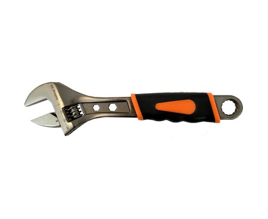 Разводной ключ для монтажа и демонтажа резьбовых соединений. Инструмент выполнен из высококачественной хромованадиевой стали, что обеспечивает прочность, надежность и долгий срок службы. Никелевое покрытие рабочей части инструмента предотвращает образование коррозии. Двухкомпонентная рукоять комфортна при работе и не скользит в руках.