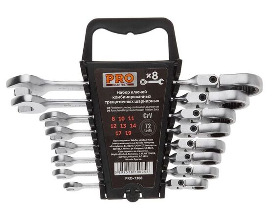 Набор ключей комбинир. 8-19мм 8шт трещоточных шарнирн. PRO STARTUL