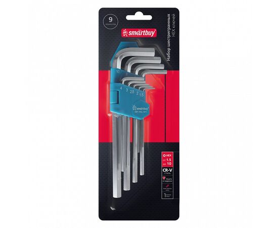 Набор шестигранных ключей (HEX) 9 шт, длинные HEX:1.5,2,2.5,3,4,5,6,8,10, CR-V,Smartbuy tools