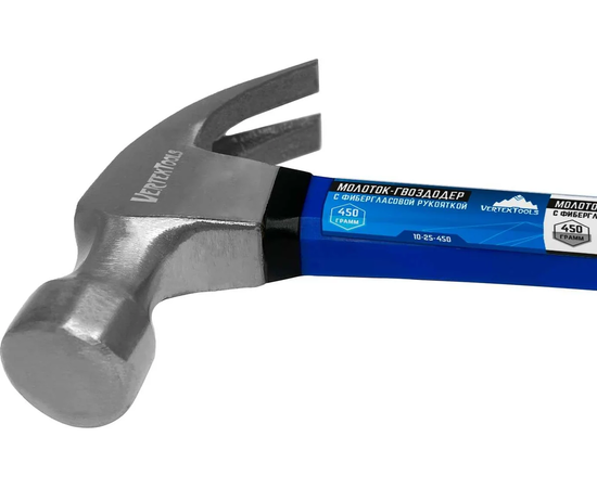 Молоток-гвоздодер, 450 г, фибергласовая обрезиненная рукоятка