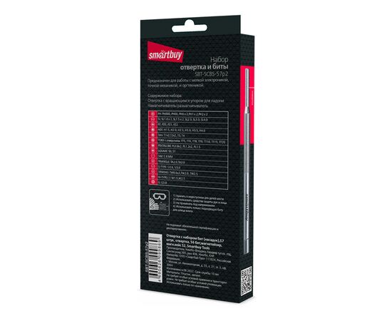 Отвертка с набором бит от SMARTBUY - это надежный и удобный инструмент для выполнения различных задач. В комплект входят 56 бит и магнитный кейс для удобства хранения и переноски. Отвертка идеально подходит как для домашнего использования, так и для профессиональных работ.