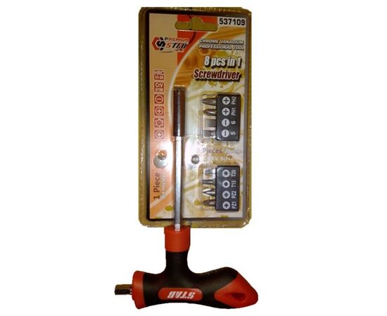 Отвертка-вороток Т-образная с набором насадок 9 предметов STAB.
