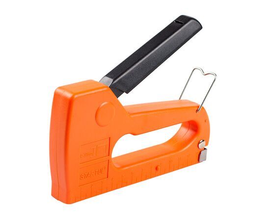 Пистолет скобозабивной пластмассовый 4-10 мм STARTUL STANDART используется для моментального присоединения различных материалов к дереву, гипсокартону, пластику.