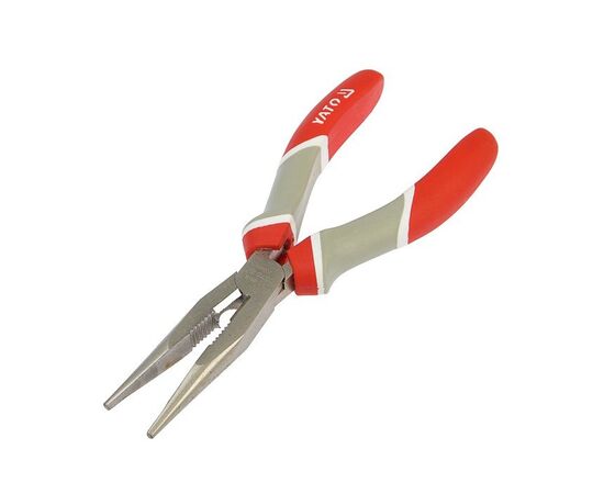 Длинногубцы Yato 200 мм загнутые (сталь CrV HRC 56-62 никелированные) двухкомпонентные рукоятки