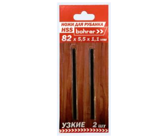 Ножи Bohrer для рубанка 82x5.5x1.1 мм (узкие) (HSS, быстрорежущая сталь) (2 ножа в блистере)