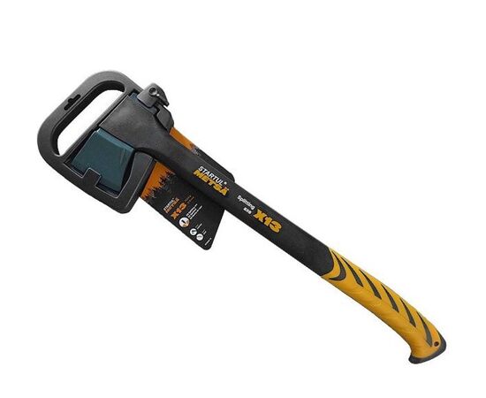 Предназначен для колки и рубки древесины. Длина рукоятки: 61 см. Материал рукоятки: фиберглас с резиновым покрытием. Материал полотна: инструментальная сталь с тефлоновым покрытием. Твердость режущей кромки: HRC 47-55. Пластиковый чехол с защелкой.