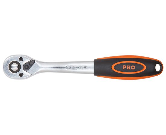 Данная трещотка имеет рукоятку эргономичной формы, изготовлена из хромованадиевой стали. Трещоточный механизм с реверсом и 72 зубьями обеспечивает исключительную мягкость и плавность в работе.