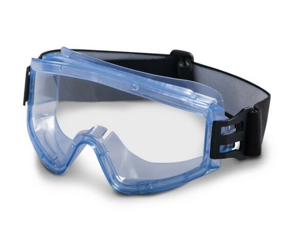 Очки плотно прилегающие, современные, комфортные и удобные, с высокой степенью защитных свойств, с панорамным защитным стеклом из оптически прозрачного super поликарбоната с твердым покрытием от истирания и царапиния, с внутренним покрытием от запотевания, корпусом из материала ПВХ, широкой полосой обтюрации, а также с широкой регулируемой наголовной лентой, надежно и удобно фиксирующей очки на голове пользователя. Защита от высокоскоростных летящих частиц со среднеэнергетическим ударом; от УФ-излучения до l = 395 нм. Очки изготовлены без металлических деталей, из материалов, обладающих идеальными изолирующими свойствами и не проводящими электрический ток.