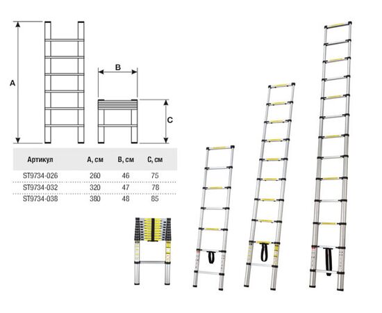 Лестница телескопическая 1-секц. алюм. 260см, 9 ступ. 6,4кг STARTUL (ST9734-026)
