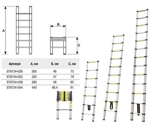 Лестница телескопическая алюминиевая 380 см 10,4 кг STARTUL (ST9734-038) имеет широкий спектр применения. Используется при работах, производимых на высоте, превышающей человеческий рост. Преимуществами данной лестницы является возможность регулировки высоты подъема и компактные размеры в сложенном виде.