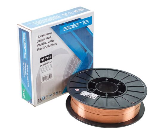 Проволока сварочная омедненная ER 70S-6 ф0,8мм (катушка D200 5 кг) SOLARIS