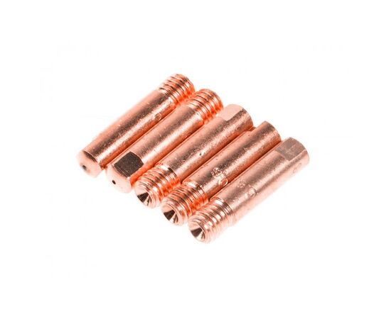 Трубка контактная SOLARIS 0,6 мм M6x25 мм (WA-2449) представляет из себя сменный наконечник от сварочных горелок для MIG/MAG сварки. Трубка изготовлена из меди и предназначена для подачи сварочной проволоки в пятно контакта, а также для подачи тока на проволоку. Трубка имеет канал для проволоки диаметром 0,6 мм и присоединяется к сварочной горелке при помощи резьбы размером М6. Подходит для сварочных горелок, устанавливаемых на сварочный аппарат SOLARIS MIG-T-145 и их аналогов.