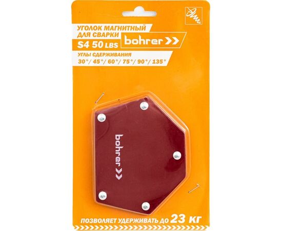 Уголок магнитный для сварки Bohrer S4 30°\45°\60°\75°\90°\135° 50LBS (до 23 кг удержание) (блистер)