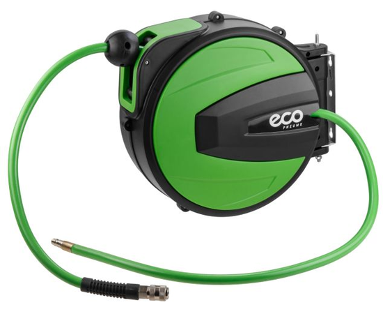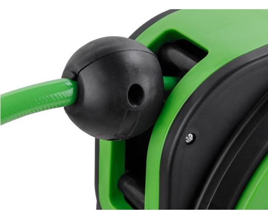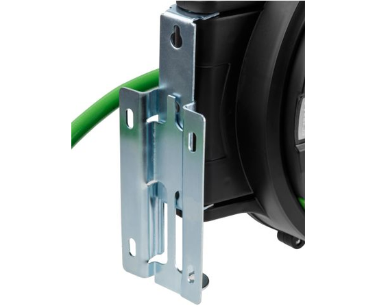 Шланг предназначен для соединения воздухонагнетательного оборудования с различным пневматическим инструментом. Оборудован катушкой закрытого типа. Имеет поворотный 180° кронштейн для крепления к стене. Катушка оснащена системой автоматической смотки. На шланге имеется передвижной ограничитель.