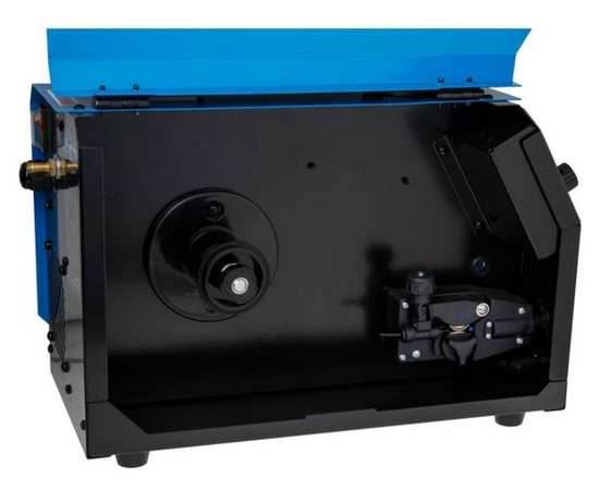 Аппарат оснащен встроенной горелкой MIG 2 метра и возможностью смены полярности для сварки проволокой без газа (FLUX).