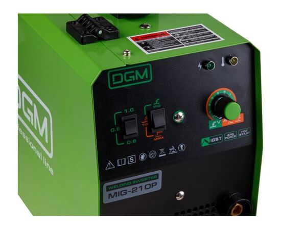 Аппарат оснащен встроенной горелкой MIG 2 метра и возможностью смены полярности для сварки проволокой без газа (FLUX).