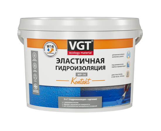 Полимерный материал с грубодисперсным наполнителем (кварцевым песком), предназначенный для гидроизоляции полов и стен во влажных помещениях: ванных, санузлов, подвалов и чувствительных к влаге оснований (гипсокартонные гипсоволокнистые листы, гипсовые стяжки, блоки, плиты и т.д.), а также для гидроизоляции гигроскопичных минеральных оснований (известково-цементных и цементных штукатурок, цементных стяжек, бетона, пористого бетона). Добавление кварцевого песка облегчает нанесение плиточного клея или декоративной штукатурки (не требует дополнительного грунтования).