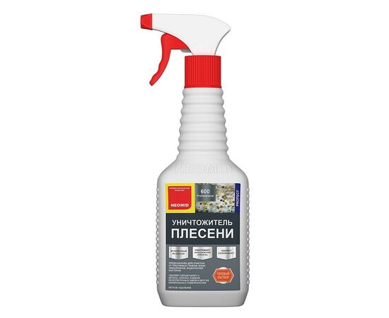 NEOMID 600 мгновенно удаляет серый налет, эффективно и быстро уничтожает грибы, мхи, лишайники, водоросли, бактерии с бетона, кирпича, камня и других минеральных поверхностей.