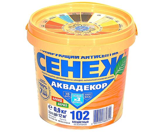 Тонирующий антисептик для древесины - 0,9 кг- СЕНЕЖ АКВАДЕКОР - Х2-102 (бесцветный)