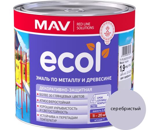 Эмаль ECOL по металлу и древесине (ПФ-115) серебристая глянцевая 2,4л (1,9 кг)