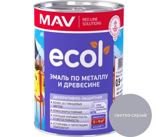 Эмаль ECOL ПФ-115 светло-серого цвета предназначена для окраски металлических и деревянных поверхностей внутри и снаружи зданий. Образует глянцевое декоративное покрытие с защитными свойствами от высокого воздействия ультрафиолетовых лучей. Устойчива к моющим средствам. За счет небольшого расхода (100-180 г/м.кв.) экономична в использовании. Полностью высыхает за 24 ч. при 18-20 С. Выдерживает температуру от -50 С до +60 С. Поставляется в емкости 0,9 кг.