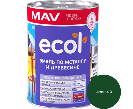 Эмаль ECOL по металлу и древесине (ПФ-115) зеленая глянцевая 1,0л (0,9 кг)