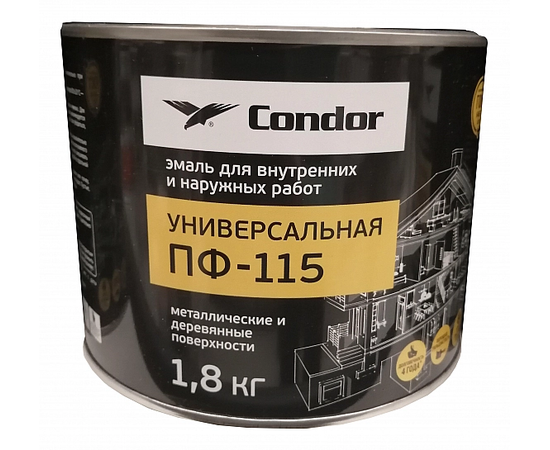 Эмаль алкидная ПФ-115 предназначена для защитно-декоративной окраски металлических, деревянных и других поверхностей, подвергающихся атмосферным воздействиям и для окраски поверхностей внутри помещений (кроме полов).