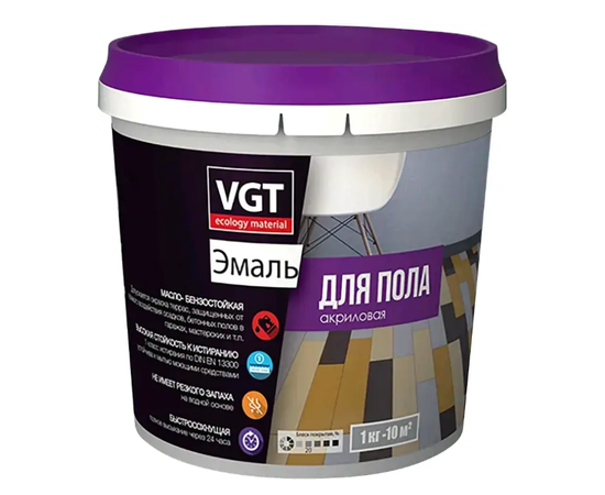 Назначение: для окраски деревянных и бетонных полов, в том числе для которых предусмотрен режим влажной дезинфекции. Допускается окраска дверей, мебели и других поверхностей внутри помещений, а также террас, защищенных от прямого воздействия осадков.