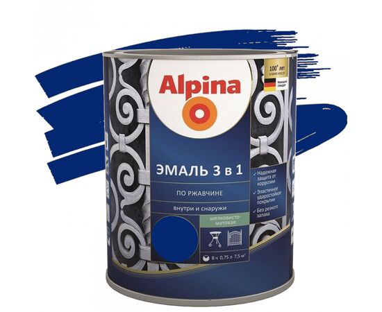 Эмаль по ржавчине 3в1 ALPINA АУ шелковисто-матовая цветная RAL 5005, 0,75 л/0,80 кг