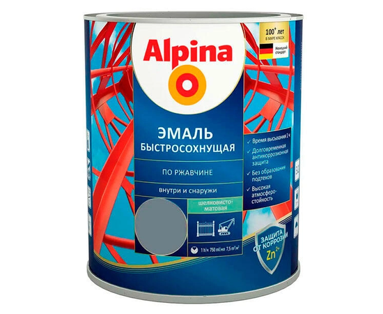 Грунт-эмаль алкидная "Alpina Эмаль быстросохнущая по ржавчине шелковисто-матовая RAL7040" 750мл/900г