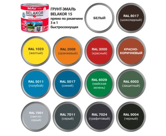 Грунт-эмаль BELAKOR 15 прямо по ржавчине 3 в 1 быстросохнущая RAL 1023 (желтый) матовый 1,0л (1,0кг)