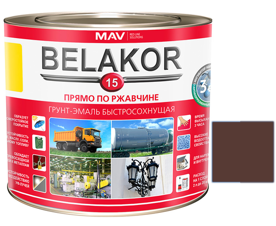 Грунт-эмаль BELAKOR 15 прямо по ржавчине 3 в 1 быстросохнущая RAL 8017 (шокол) матовый 1,0л (1,0кг)