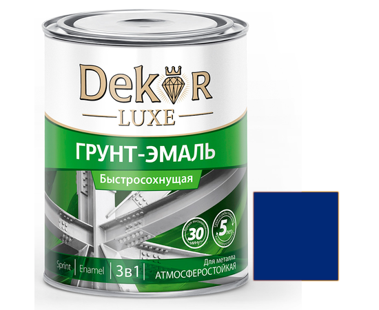Грунт-эмаль "DEKOR" SPRINT 3 в 1 быстросохнущая синяя 0,9 кг