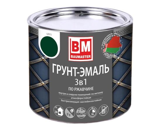 Грунт-эмаль по ржавчине 3 в 1 "BAUMASTER", светло-серая RAL 7004, 0,8 кг